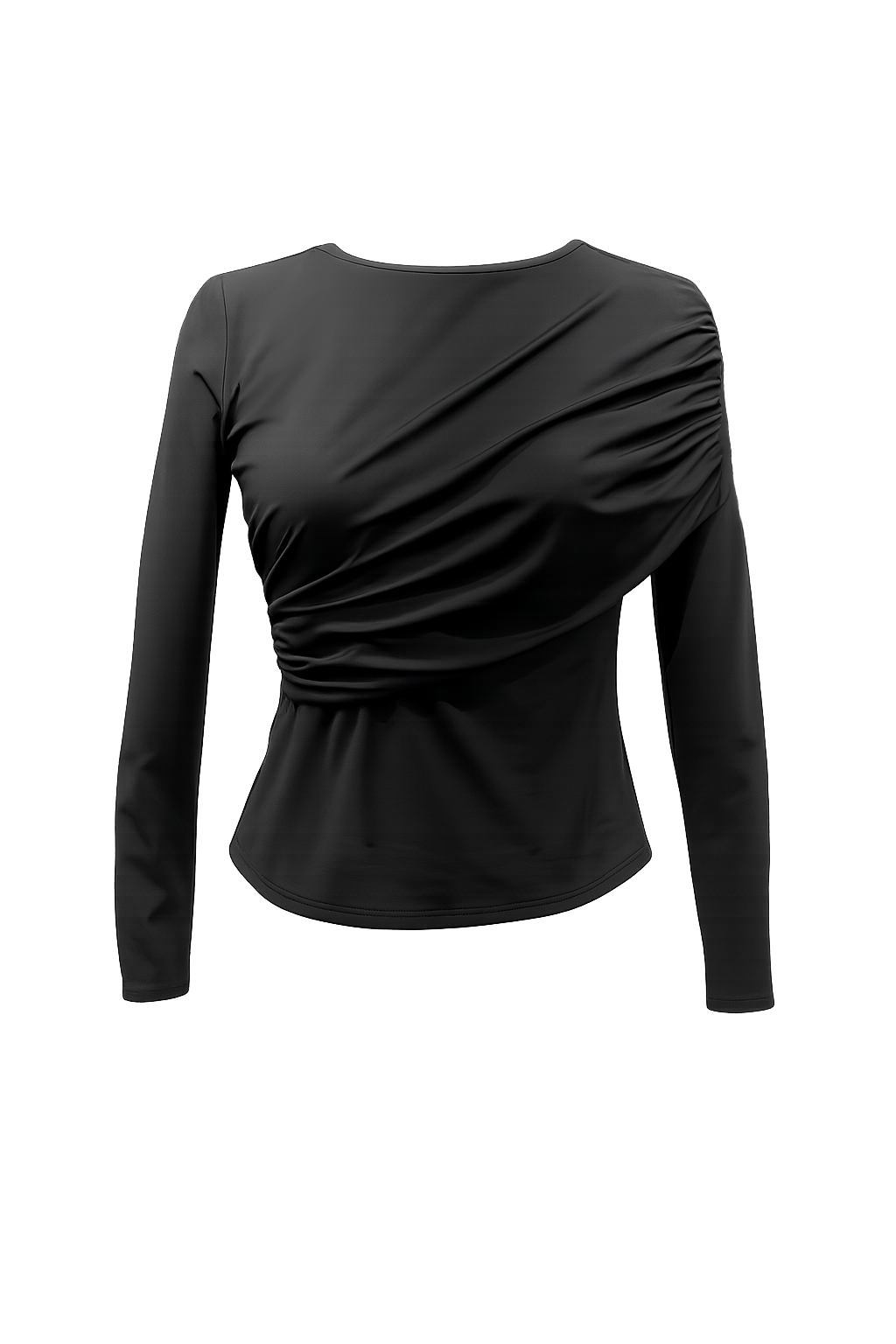Diseñada para quienes se visten sin miedo a ser diferentes, la Noir Asimétrica eleva cualquier outfit con su silueta drapeada y corte estructurado. El escote cerrado contrasta con un fruncido lateral que enmarca el torso, creando un juego de líneas que estiliza y da carácter.